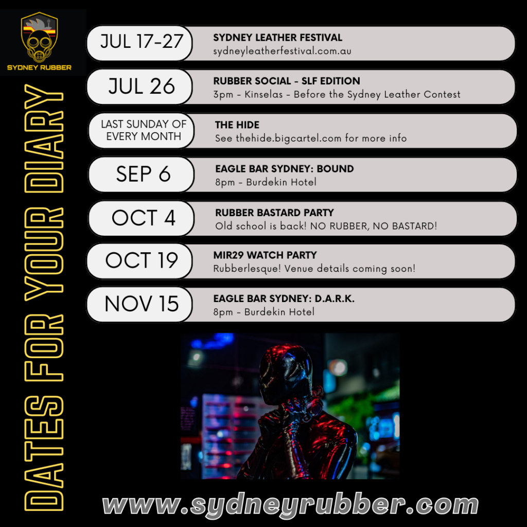 We’ve got a shiny calendar full of events to get excited about! Whether you’re gearing up for Rubber Bastard, catching up at Rubber Social, or joining us for the very first time – here’s what to keep on your radar:
